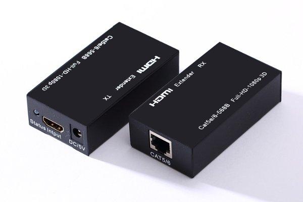 HDMI extender adalah alat yang berupa sepasang konverter dengan fungsi membuat kabel LAN UTP 6 sebagai pengganti fungsi Kabel HDMI. Sepasang konverter ini terdiri dari Sender (pengirim) dan Receiver (penerima).
